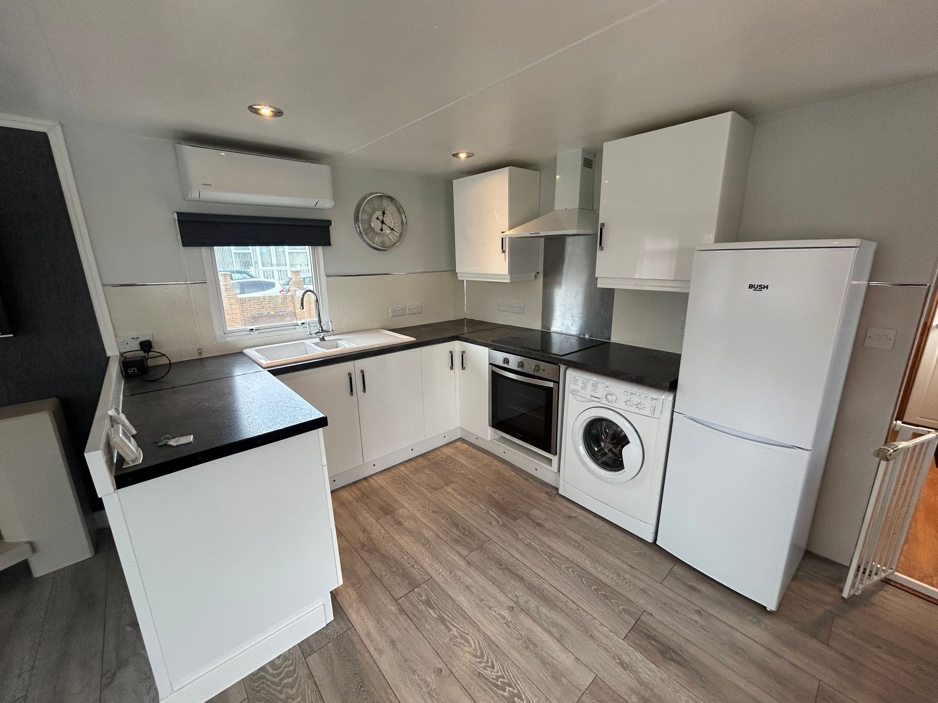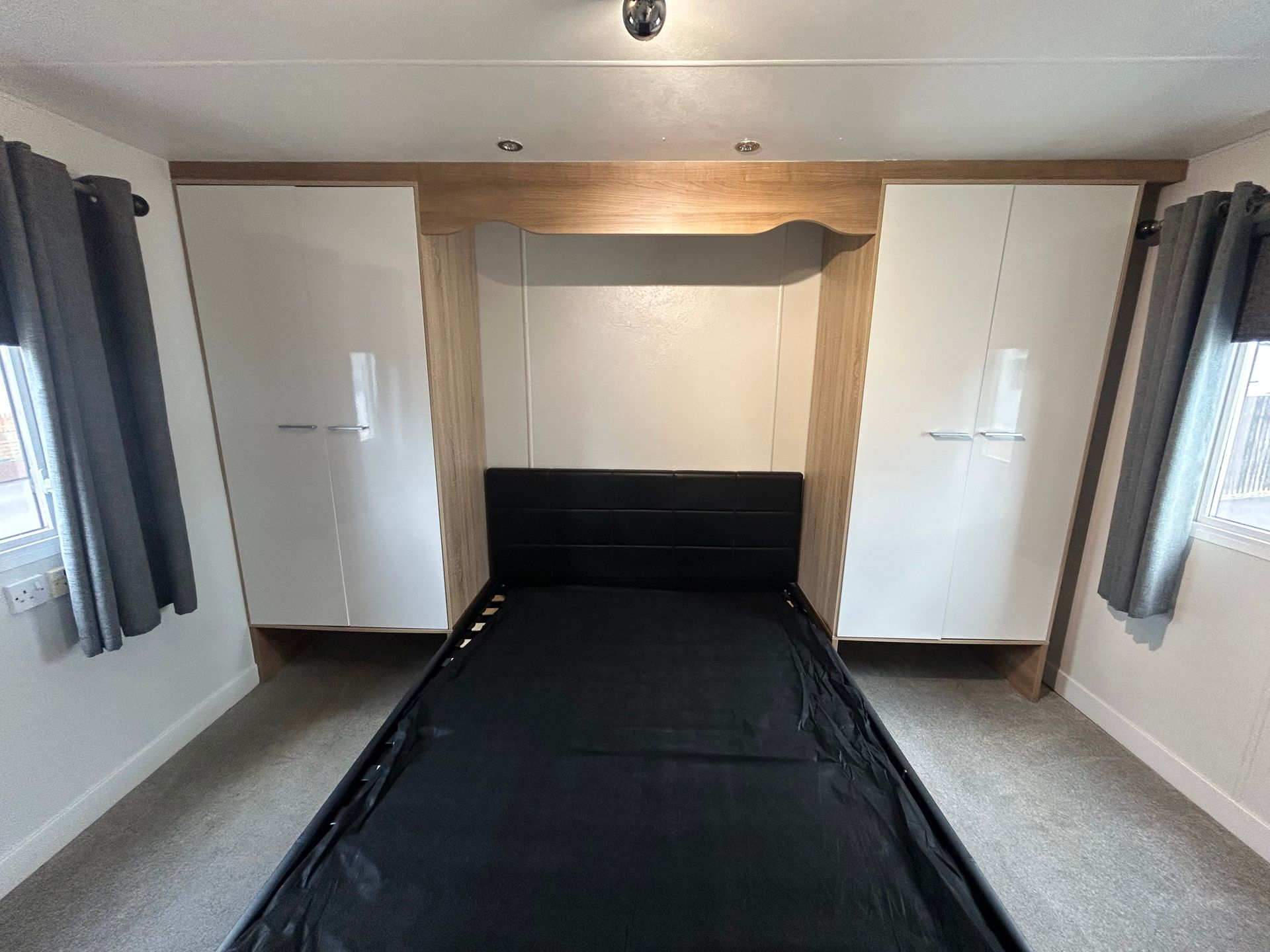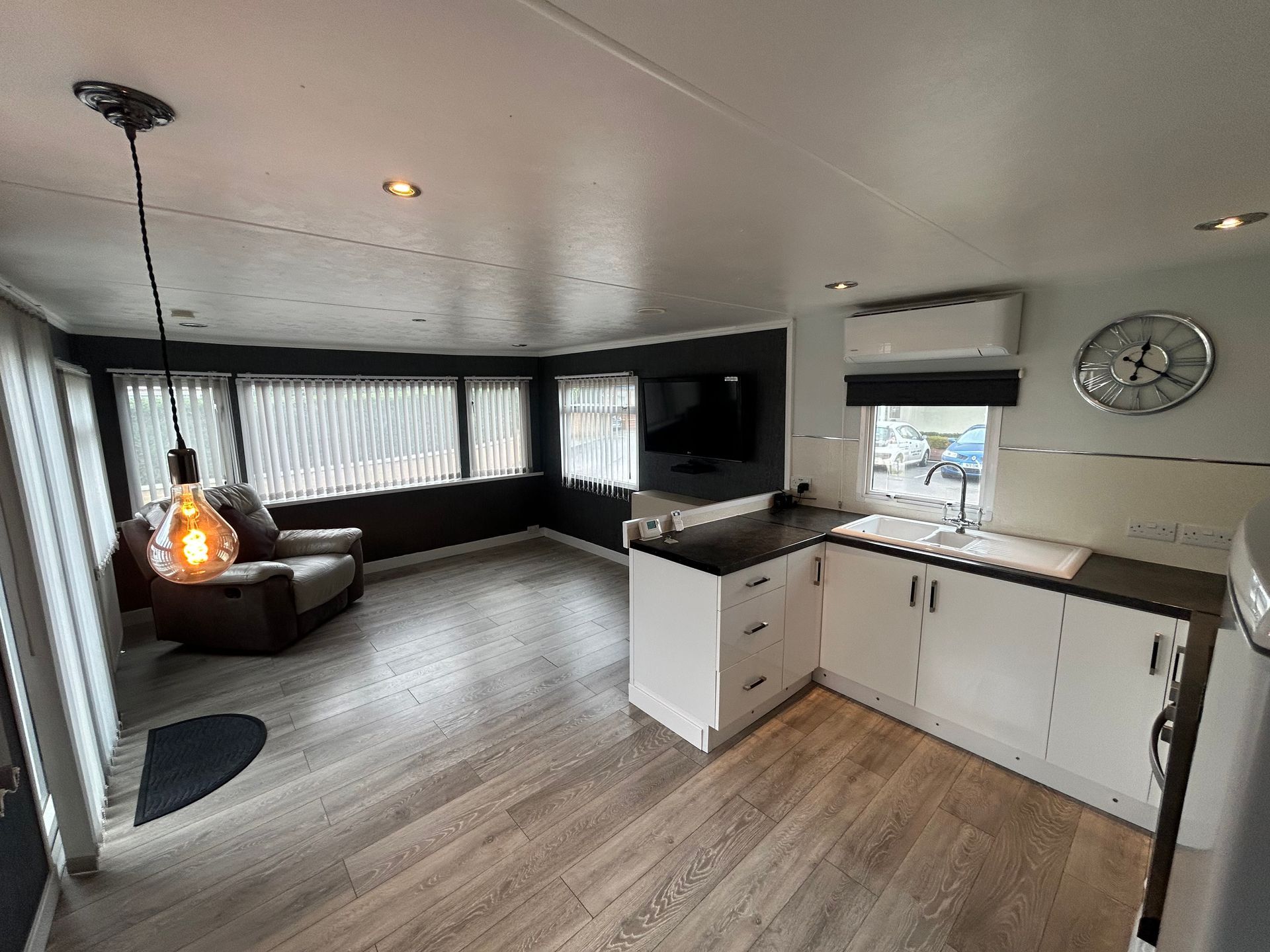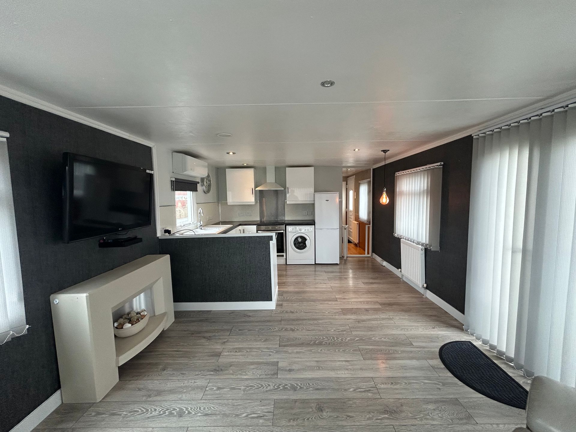 Stylishly decorated throughout and formerly a 2-bed, this static caravan has been extensively reconfigured to provide 1 large master bedroom, plus a large family bathroom with a walk-in shower and bath.