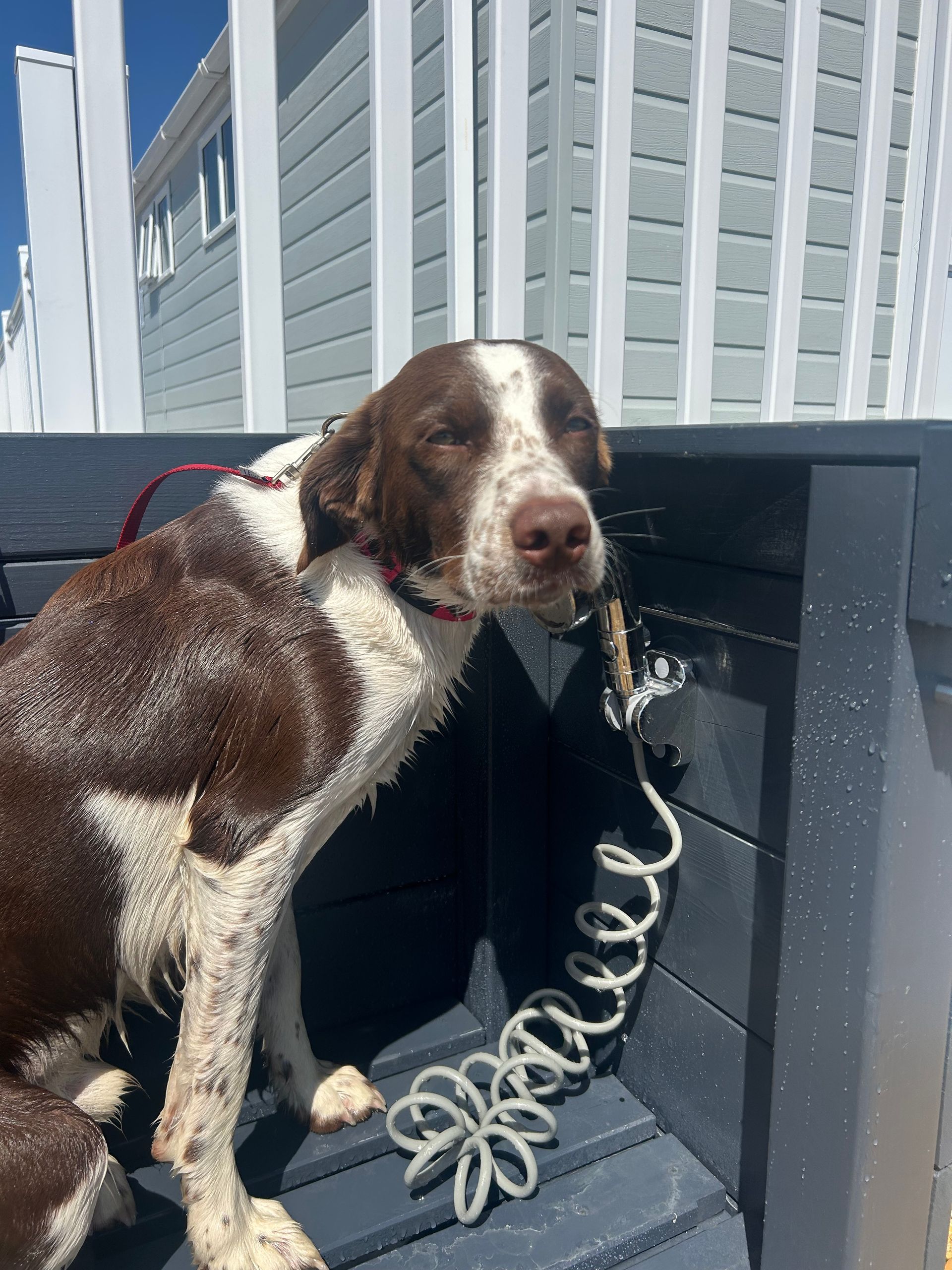 Our new doggy wash station provides the perfect place for pet owners to wash off muddy paws after a morning walk along the river Axe, or an afternoon at the beach. Designed with convenience and cleanliness in mind, you and your pet can enjoy the great outdoors without the worry of bringing the mess and mud back to your caravan, tent or car!