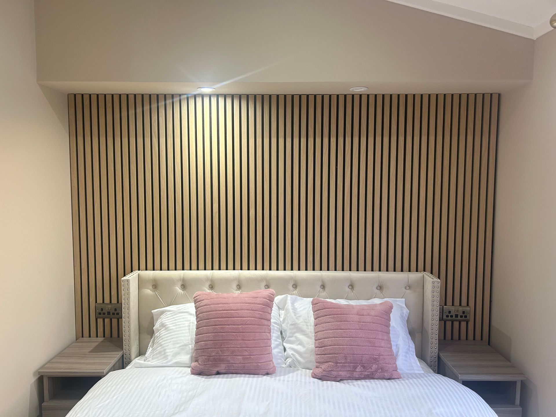 Spacious main bedroom with fitted wardrobes and a vanity area with drawers, plus ensuite shower room.