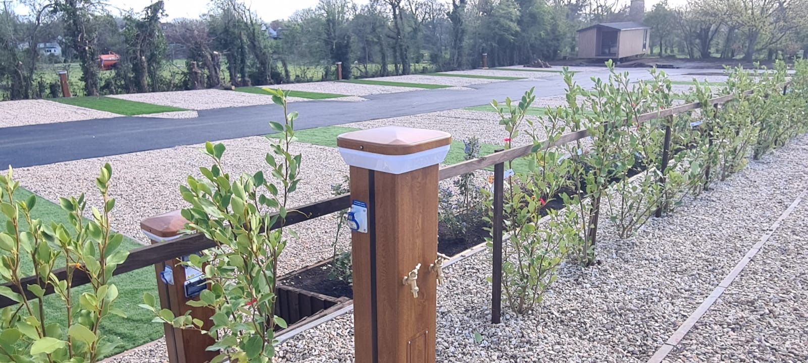 - All hardstanding pitches have been upgraded with dedicated provision for electric, surface drainage and grey water drainage.