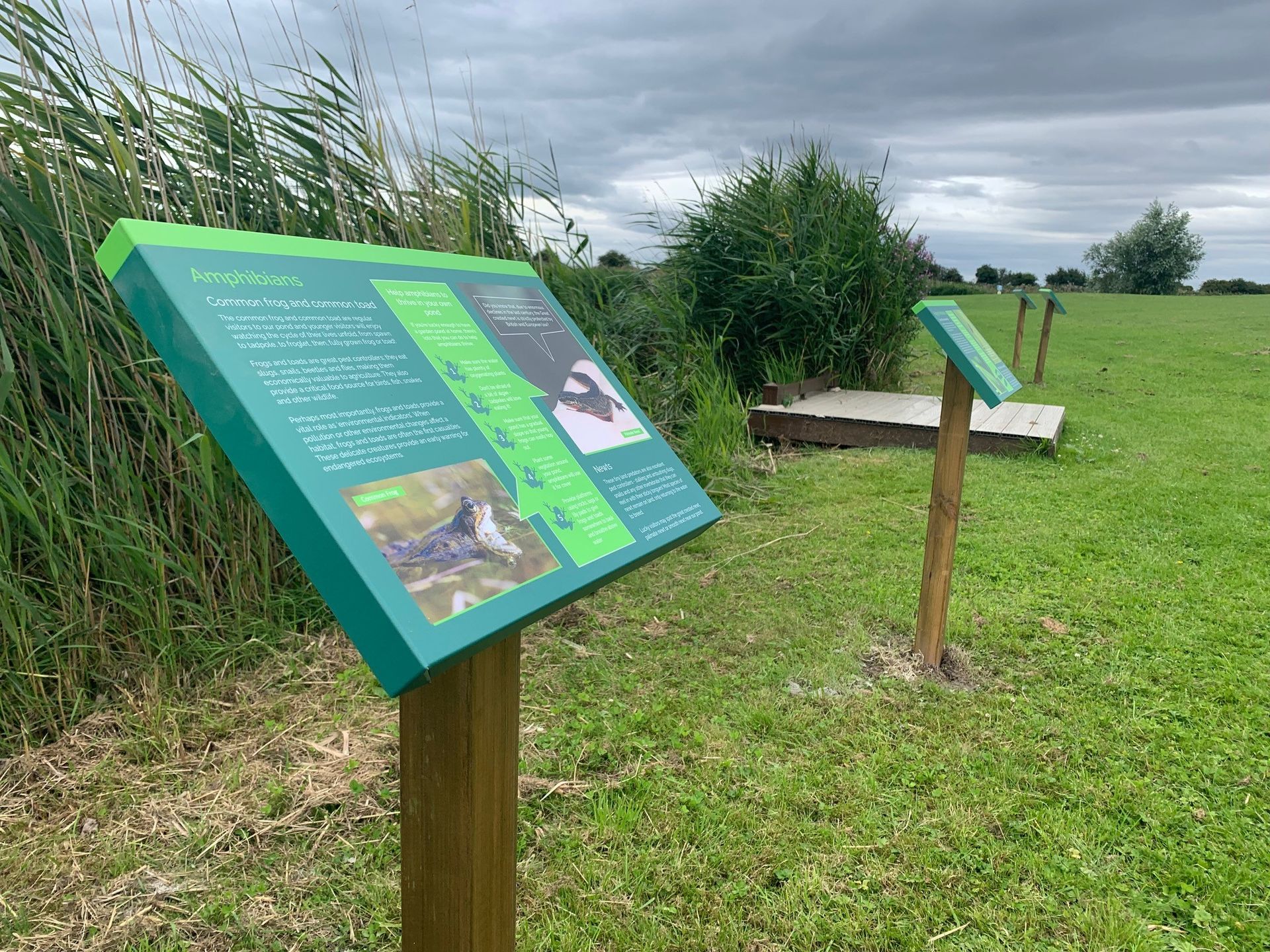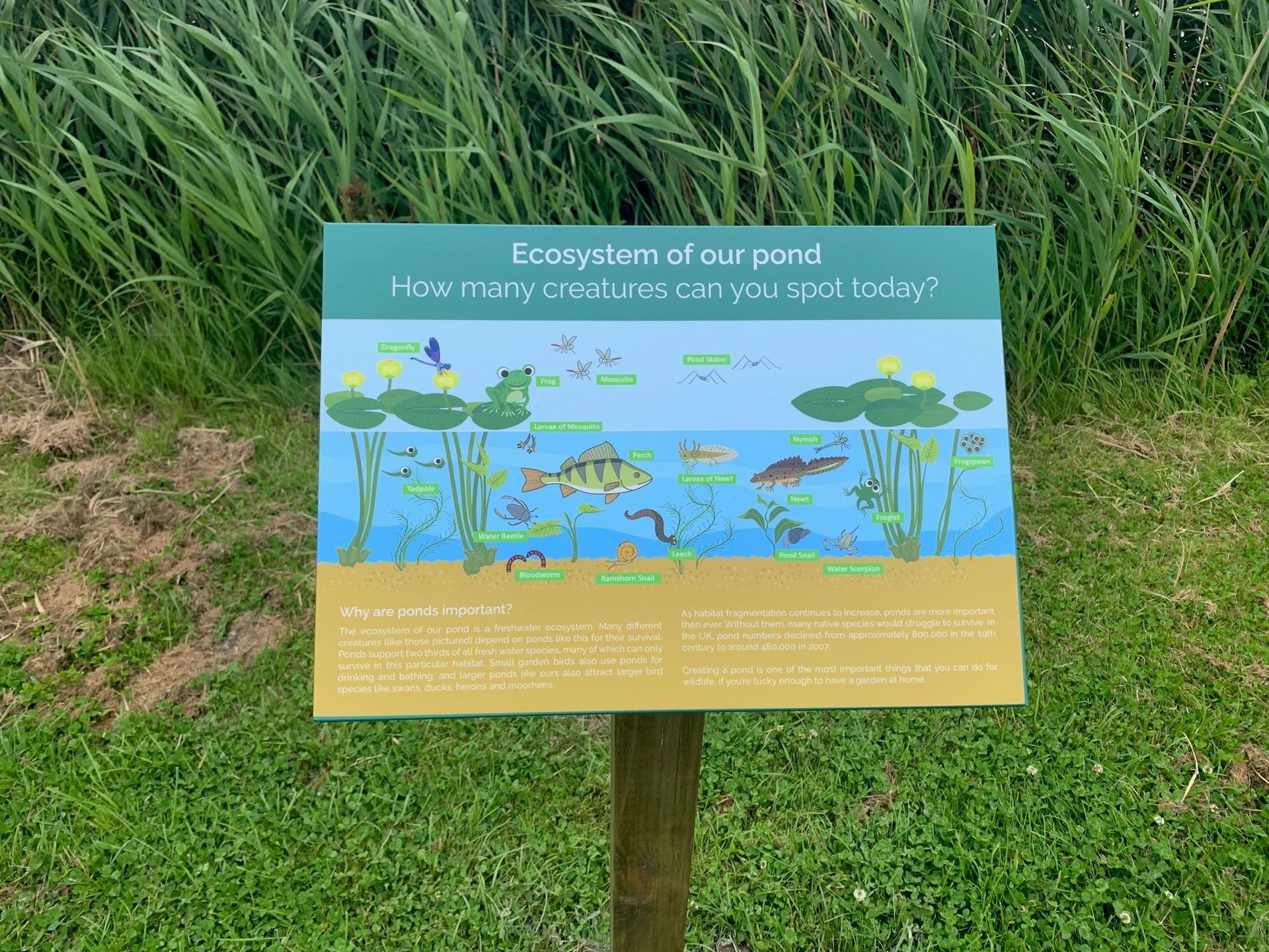 If you venture along the river to our fishing pond, you will find four new information boards, each researched and designed by David and Kim, to provide interesting information and fun facts about the different creatures that rely on this unique ecosystem for their survival.