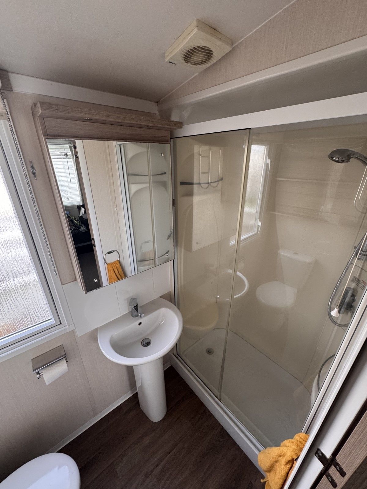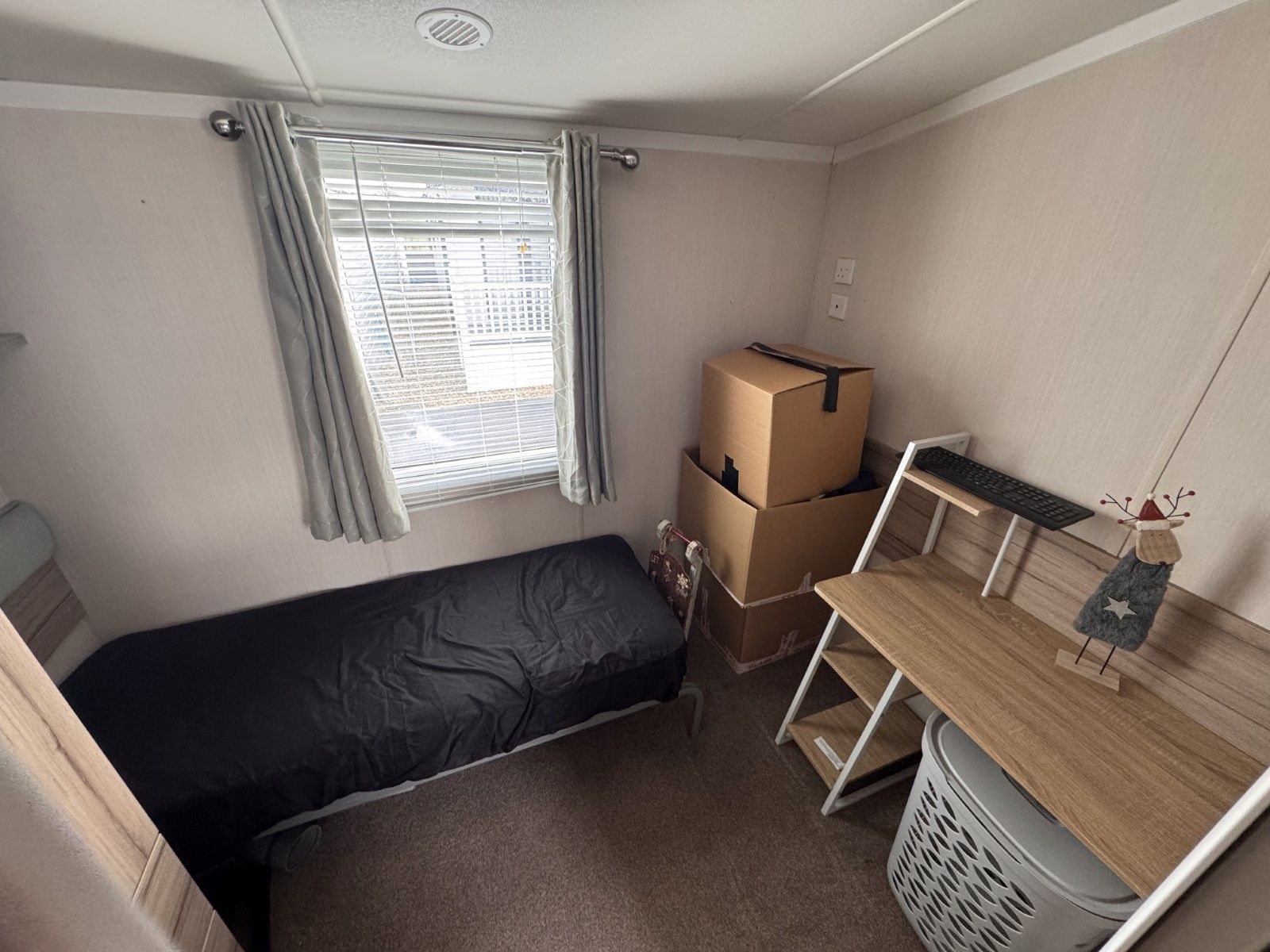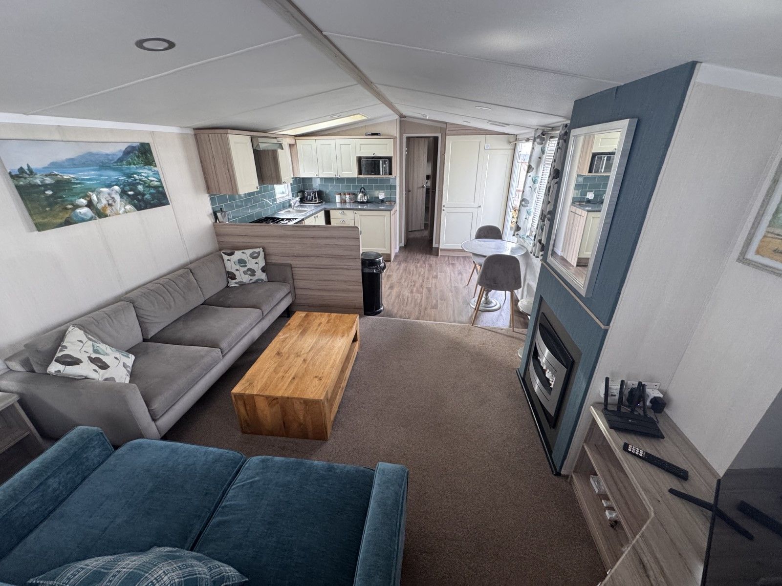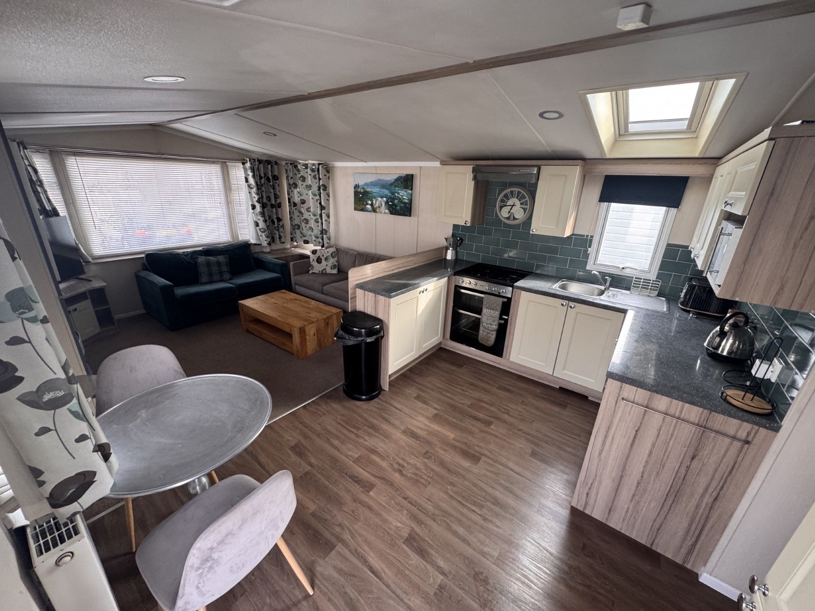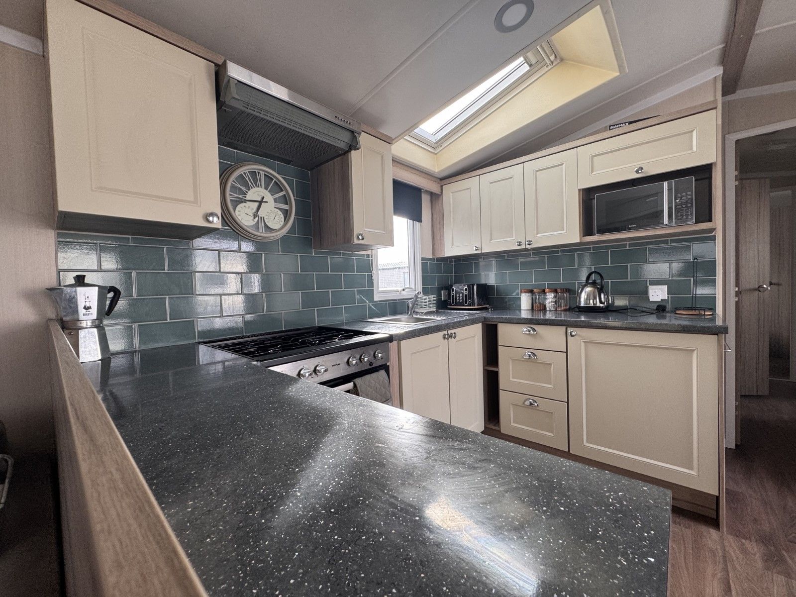 This 2-bed holiday home is presented in excellent condition with an open-plan kitchen and living area. The U-shaped kitchen is fully equipped with an integrated fridge/freezer and oven with extractor fan. Includes all furniture and appliances (plus 50 inch 4K Smart TV) and air conditioning unit.