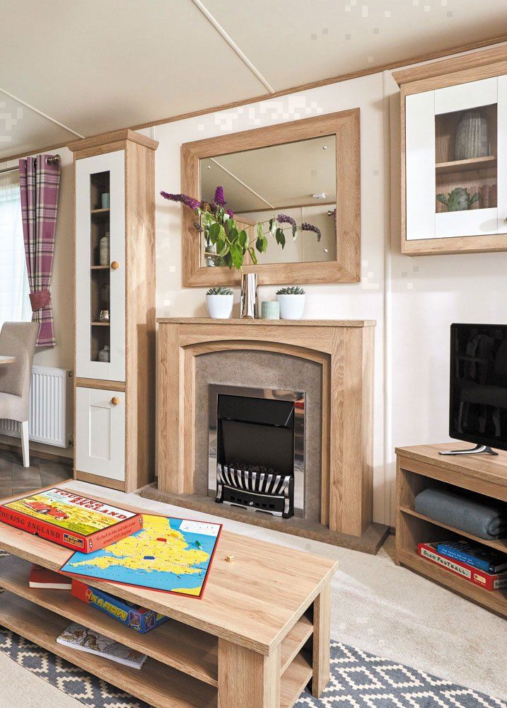 with a timber mantle piece and large mirror. To the right is a two-shelf television stand with wall mounted cabinet and to the left a tall display cabinet. Additionally, the lounge boasts USB sockets, offering a convenient charging point for your smart phones and tablet.