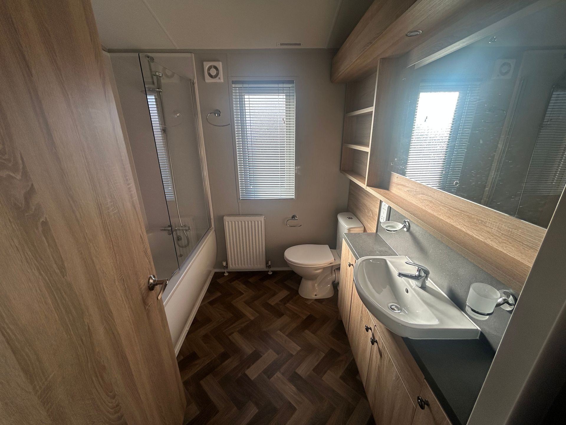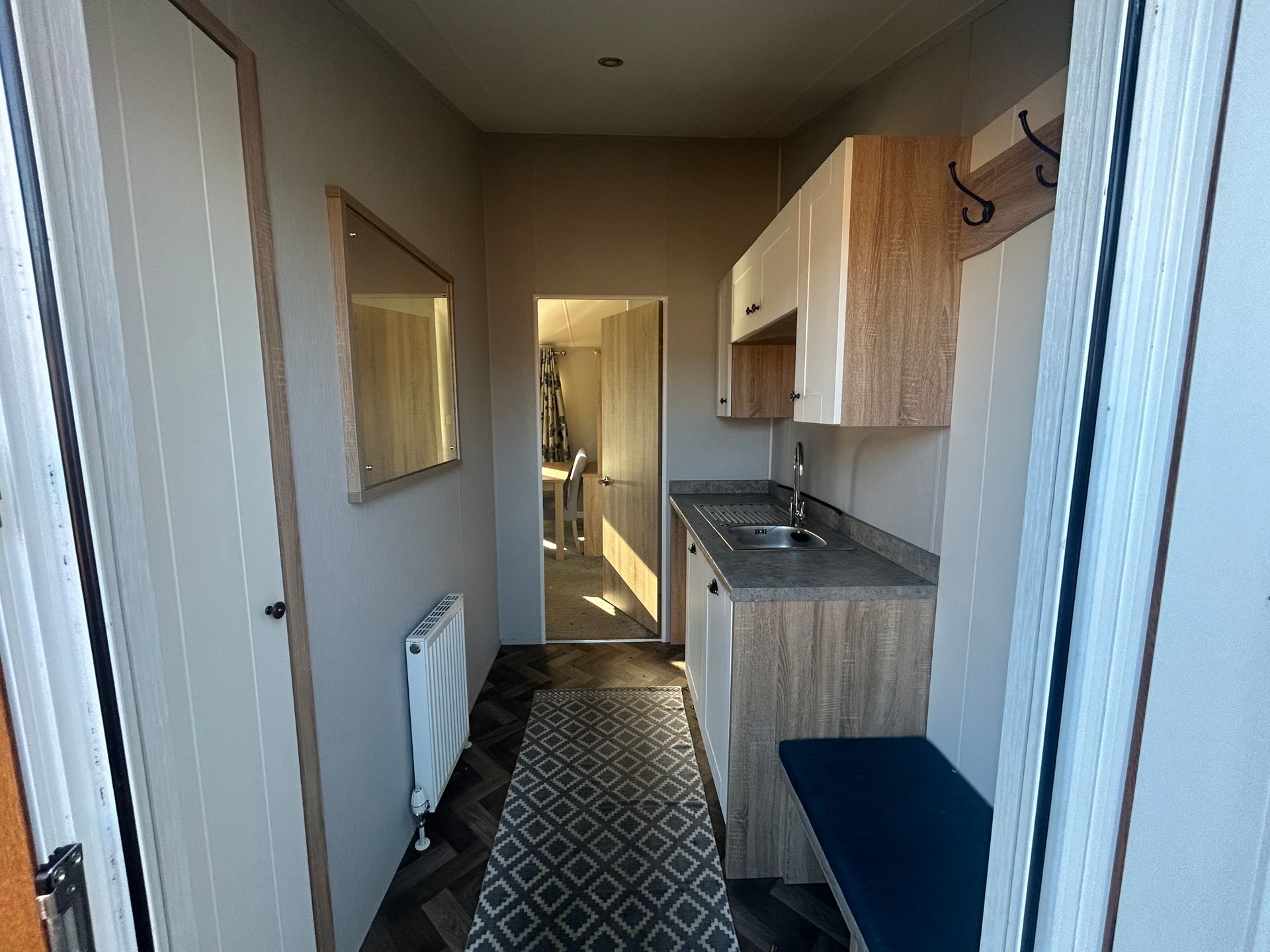 With a fresh colour scheme, this open-plan lodge is ideal for family holidays. The master bedroom boasts a walk-in wardrobe, and both bedrooms have room for a king-size bed.