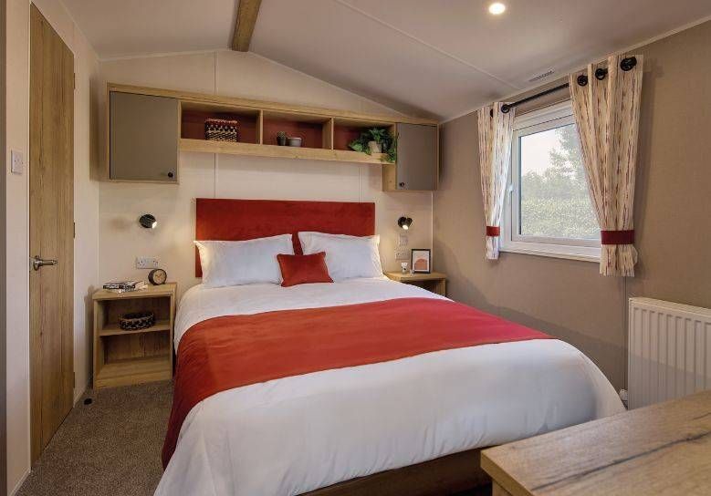 The master bedroom features plenty of cleverly designed storage space. The wardrobe gives you lots of space for your holiday essentials without losing any space in your bedroom, there's also two bedside tables and overhead storage, plus an ensuite wc and dressing table with mirror.