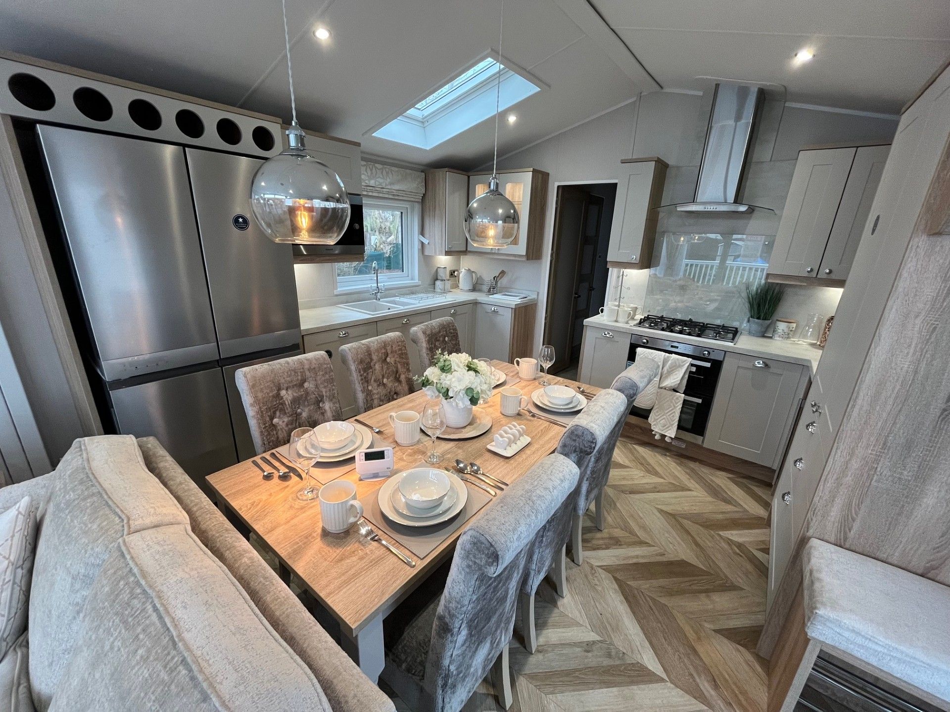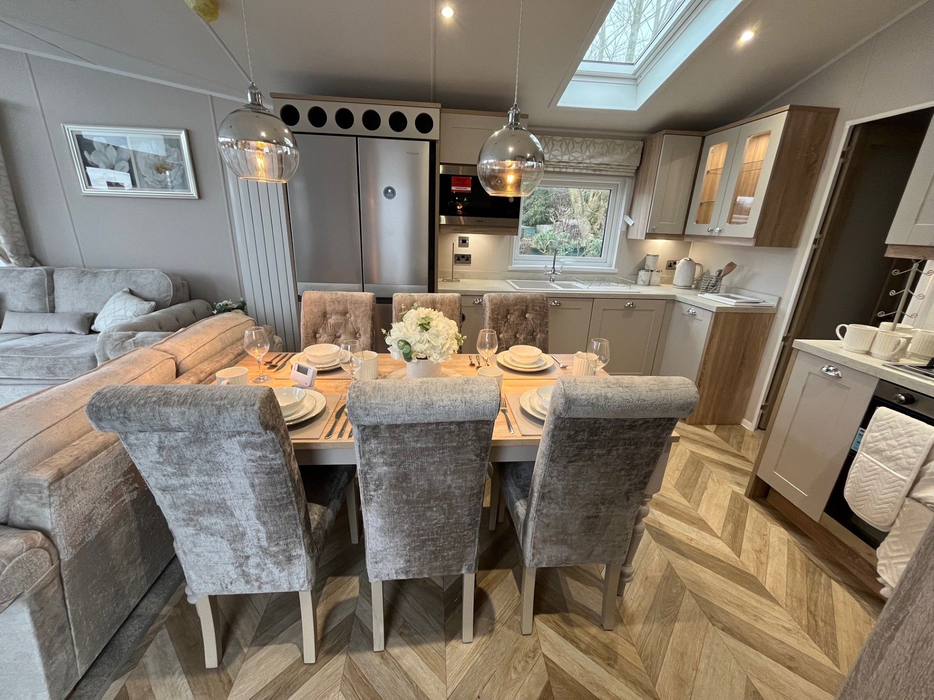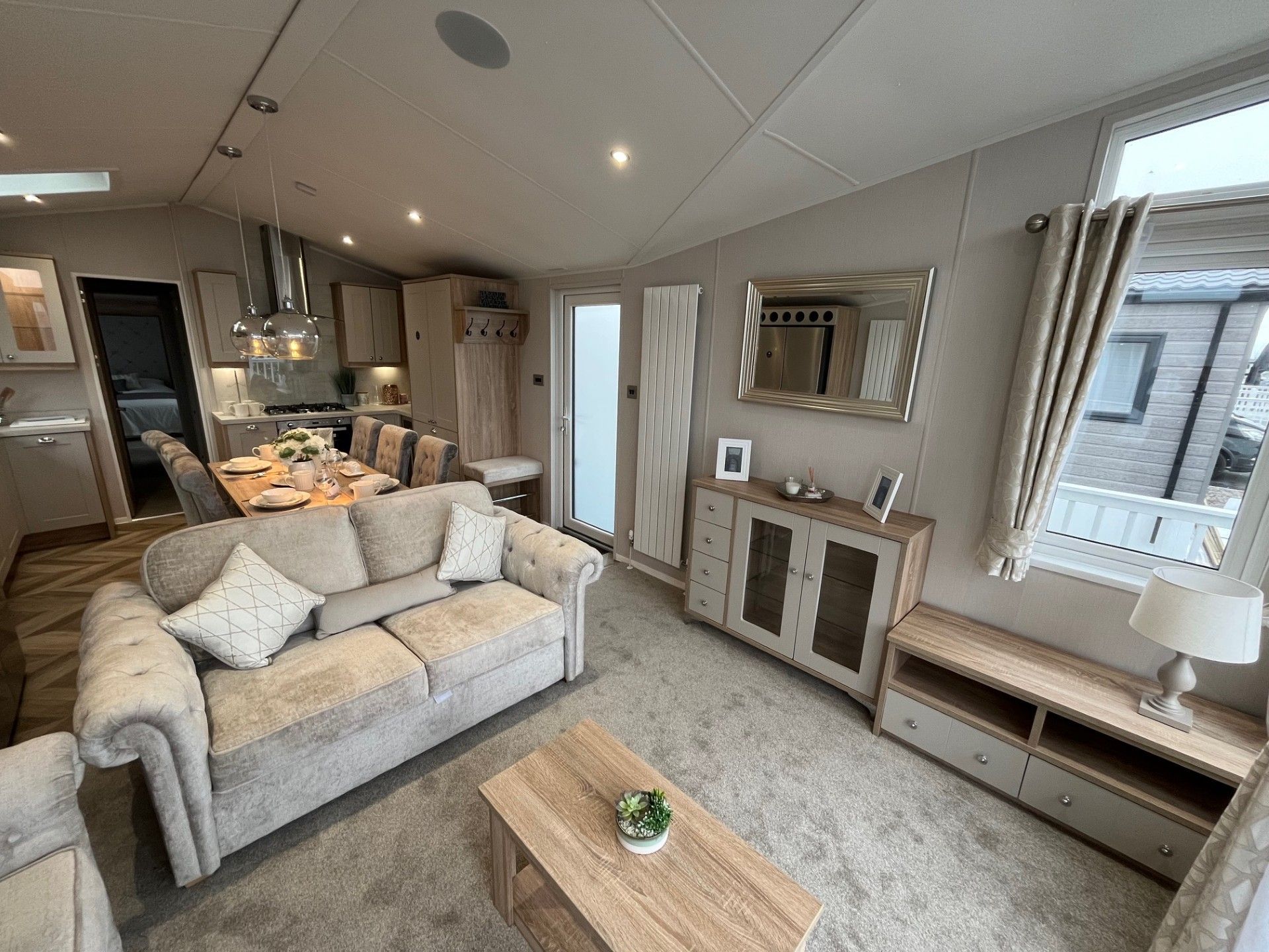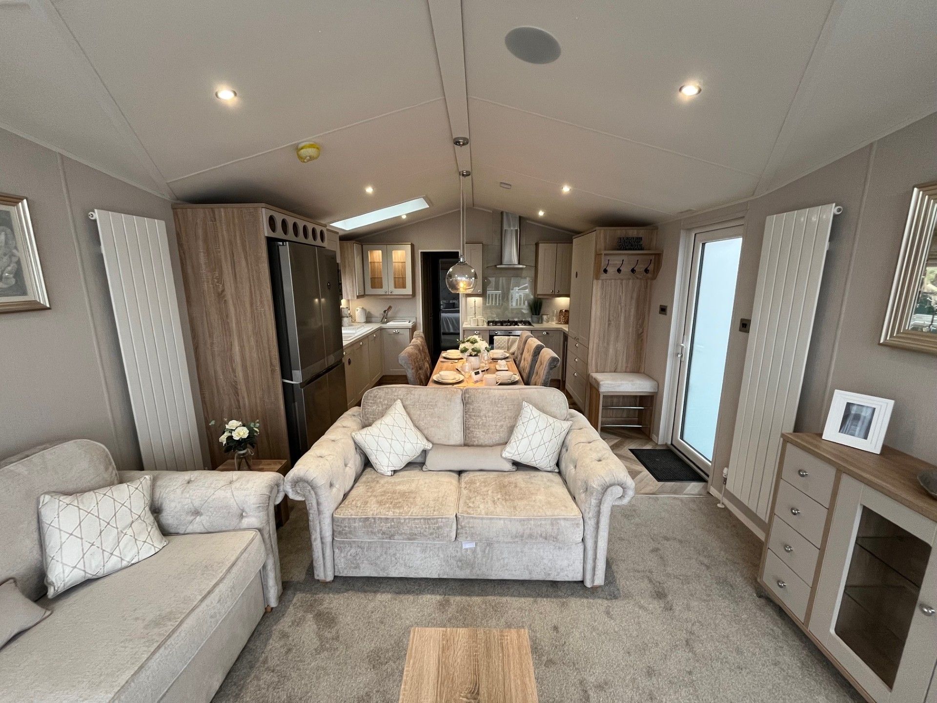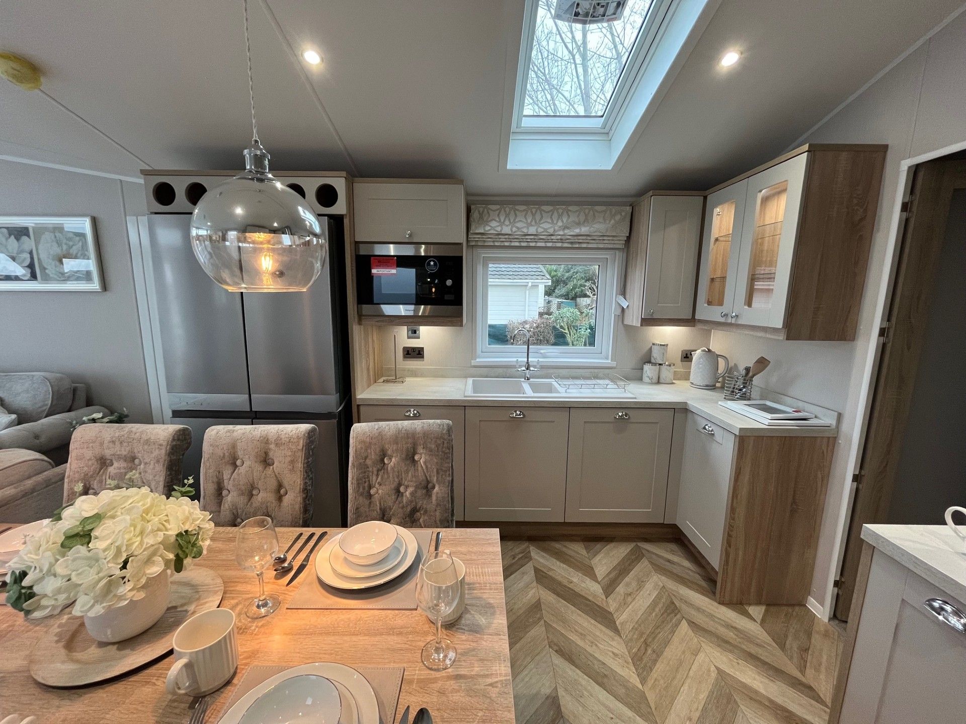 The Vogue Classique's extra width and high, sloping ceiling make space for one of the roomiest lounges you’ll find in a holiday home. The big, plush sofas are even comfier than they look and they’re freestanding too, so you can move them around to suit you. And with an efficient vertical radiator, you’ll always be toasty warm.