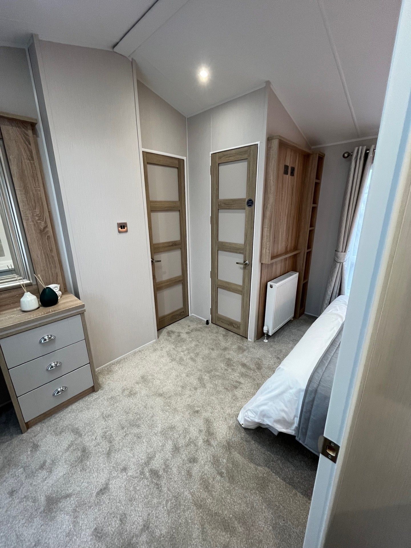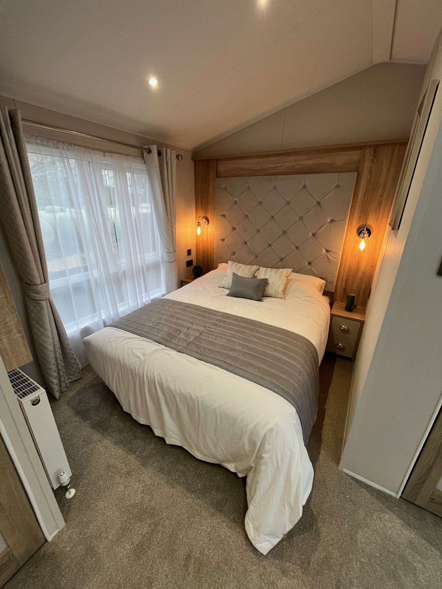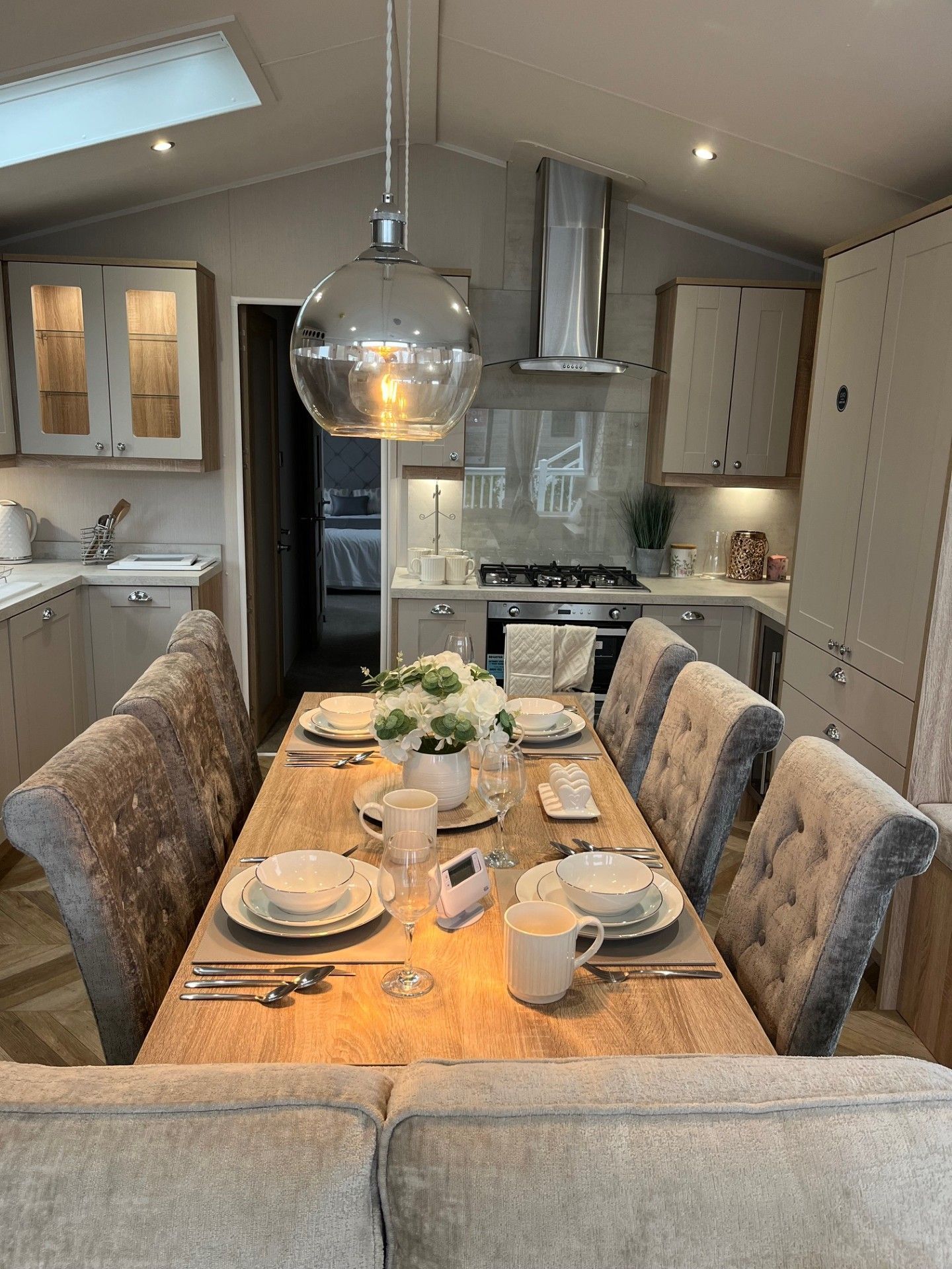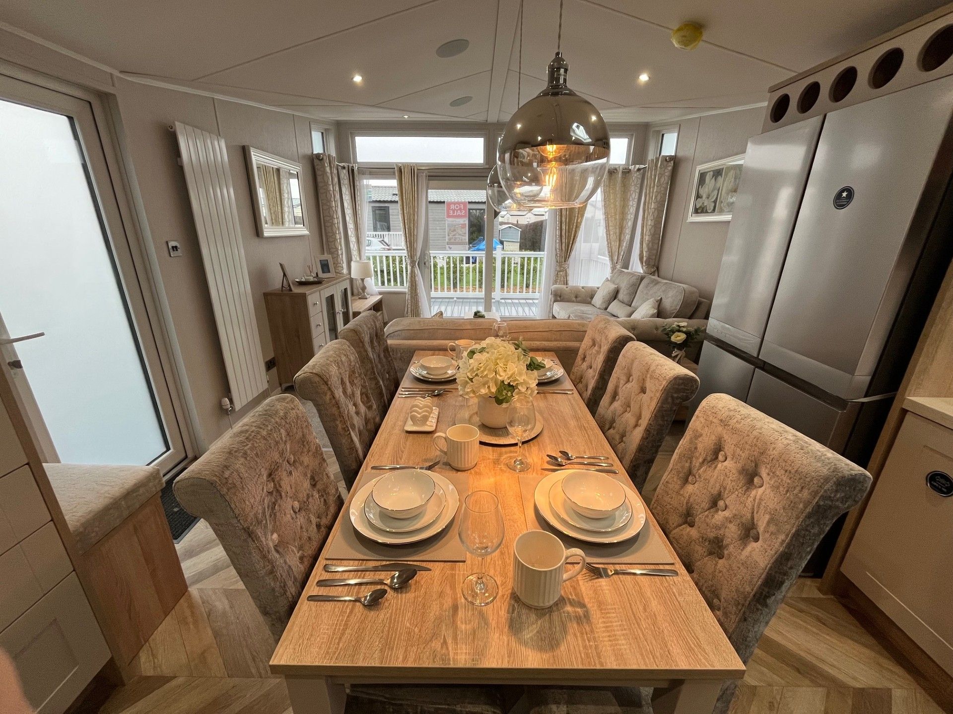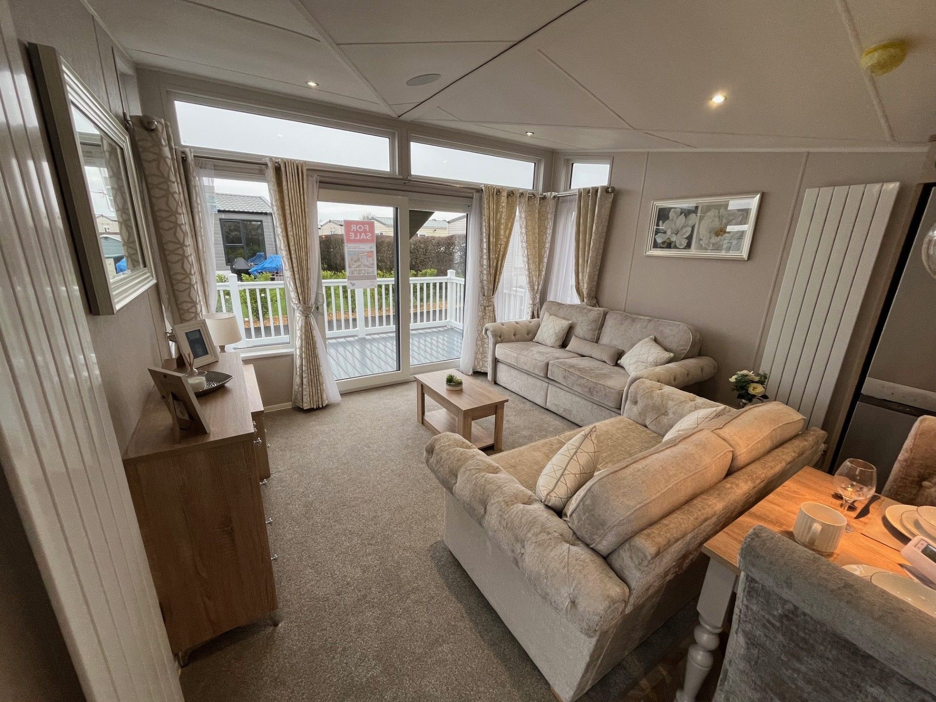 The Vogue Classique's extra width and high, sloping ceiling make space for one of the roomiest lounges you’ll find in a holiday home. The big, plush sofas are even comfier than they look and they’re freestanding too, so you can move them around to suit you. And with an efficient vertical radiator, you’ll always be toasty warm.