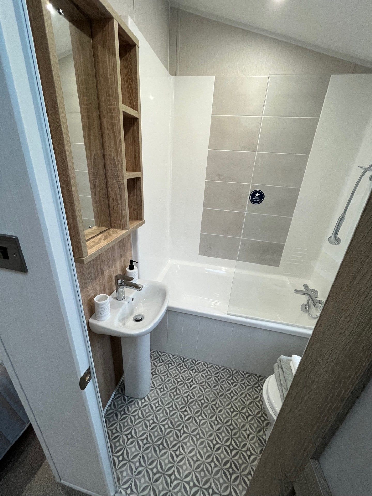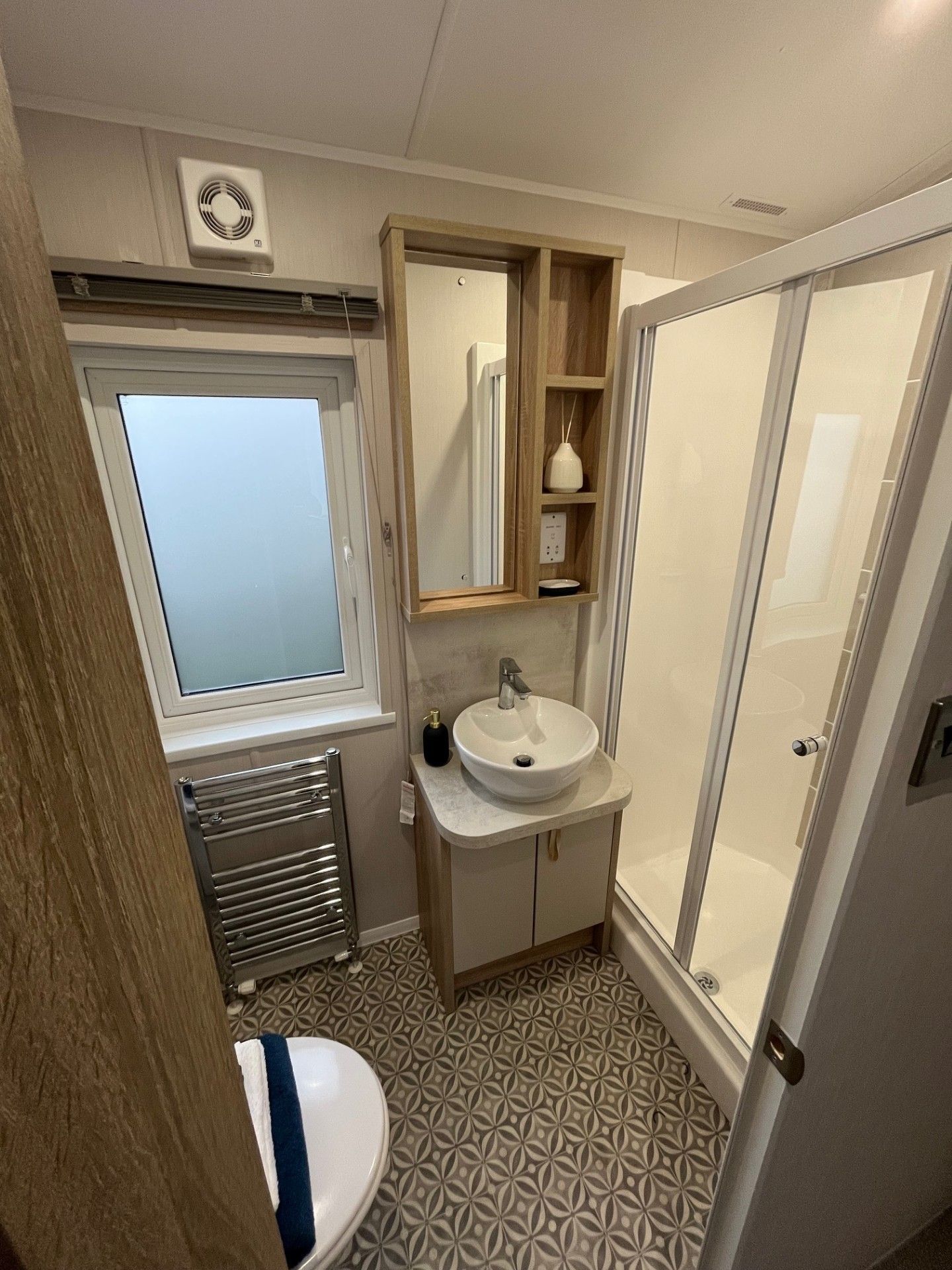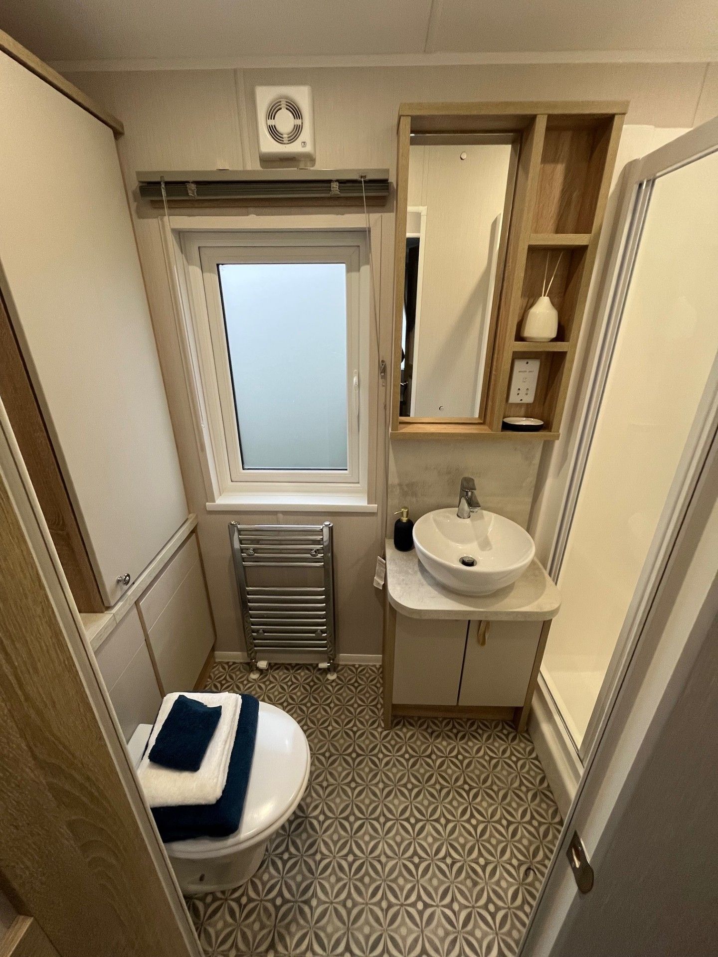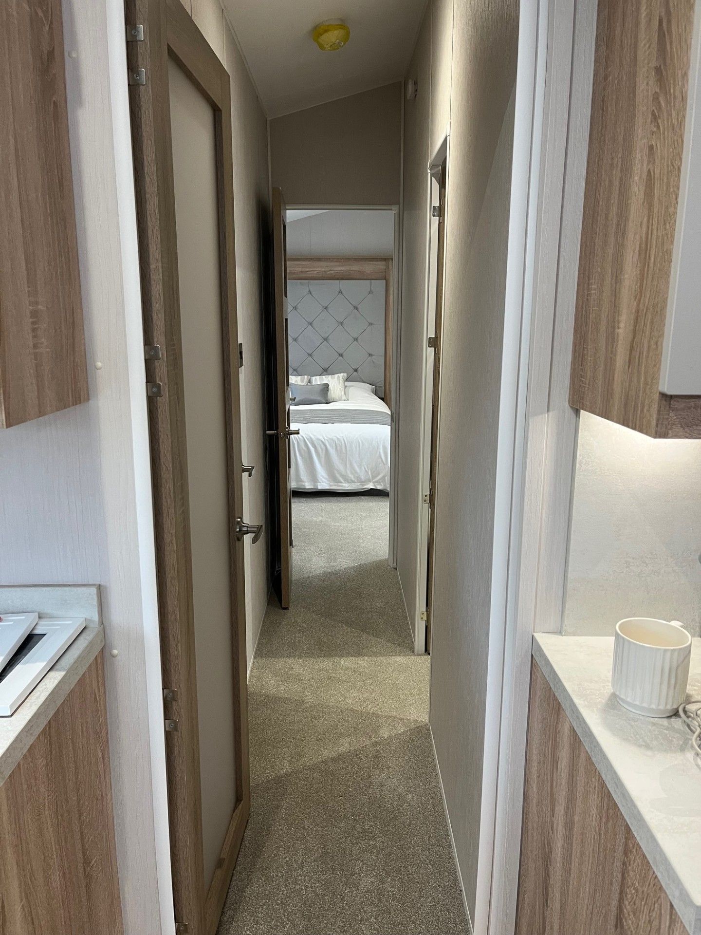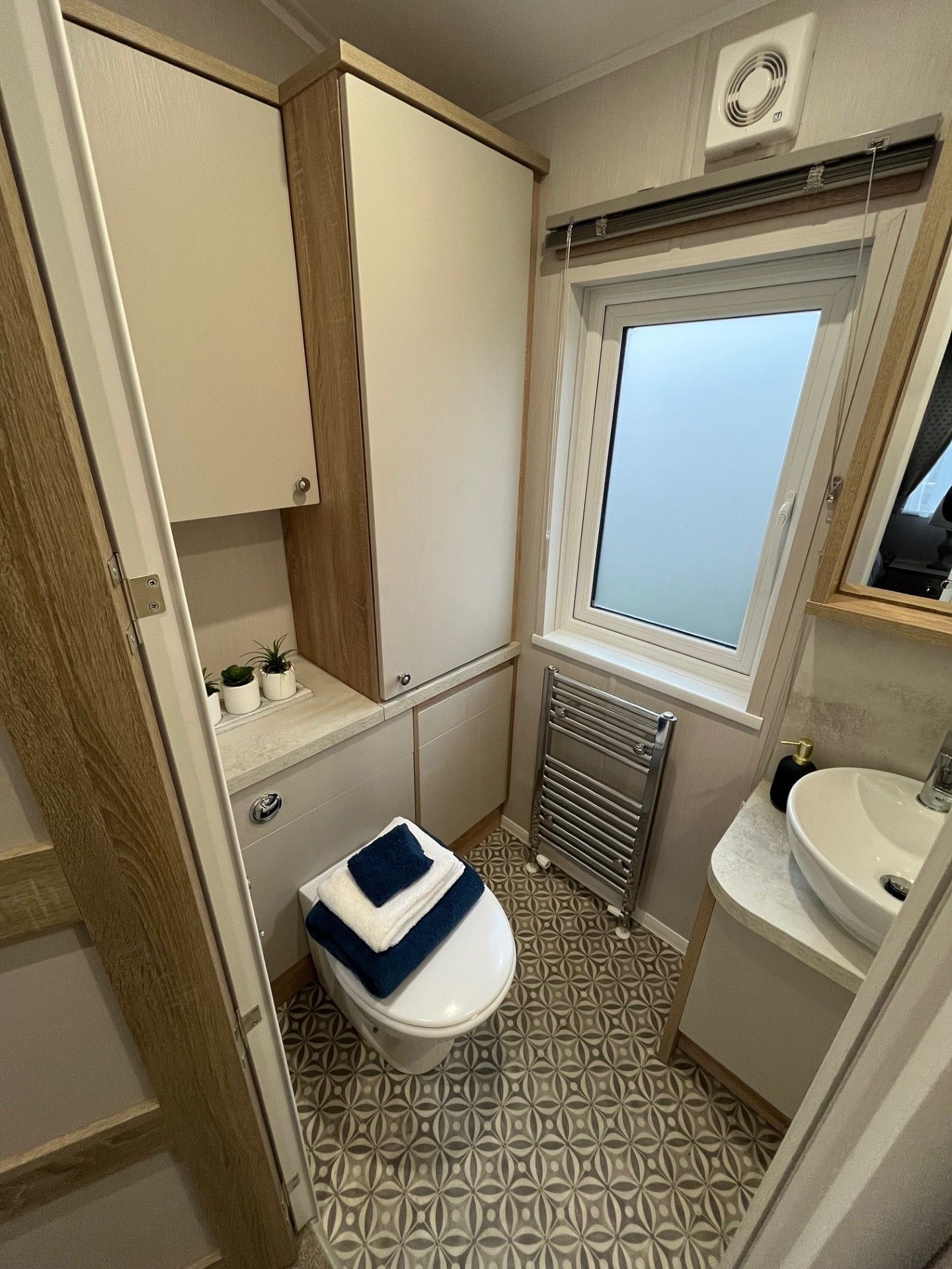 The Vogue Classique's extra width and high, sloping ceiling make space for one of the roomiest lounges you’ll find in a holiday home. The big, plush sofas are even comfier than they look and they’re freestanding too, so you can move them around to suit you. And with an efficient vertical radiator, you’ll always be toasty warm.
