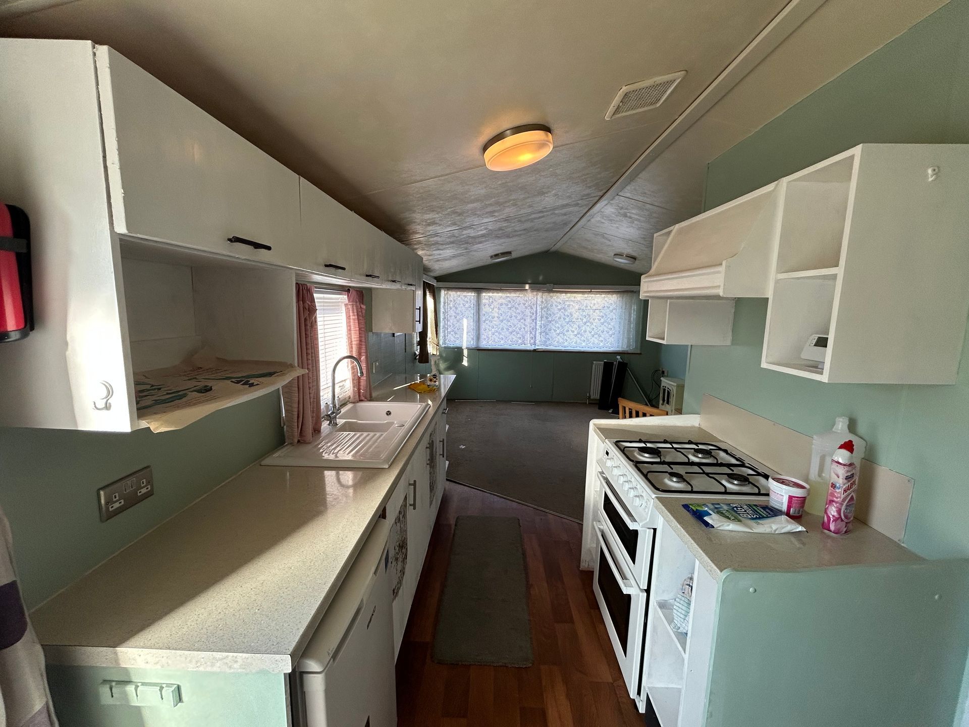 Open-plan living with a galley kitchen