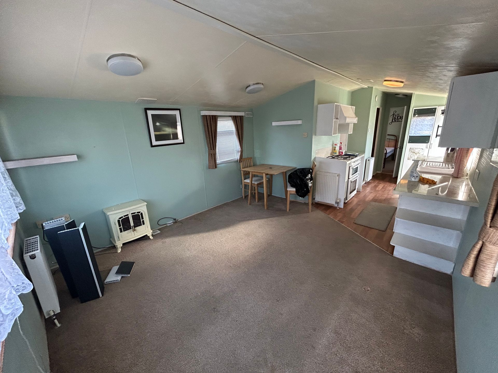 This 2012 model 2-bed Willerby Westcoast boasts open-plan living with a galley kitchen. Located on a quiet plot with a grassed garden area.