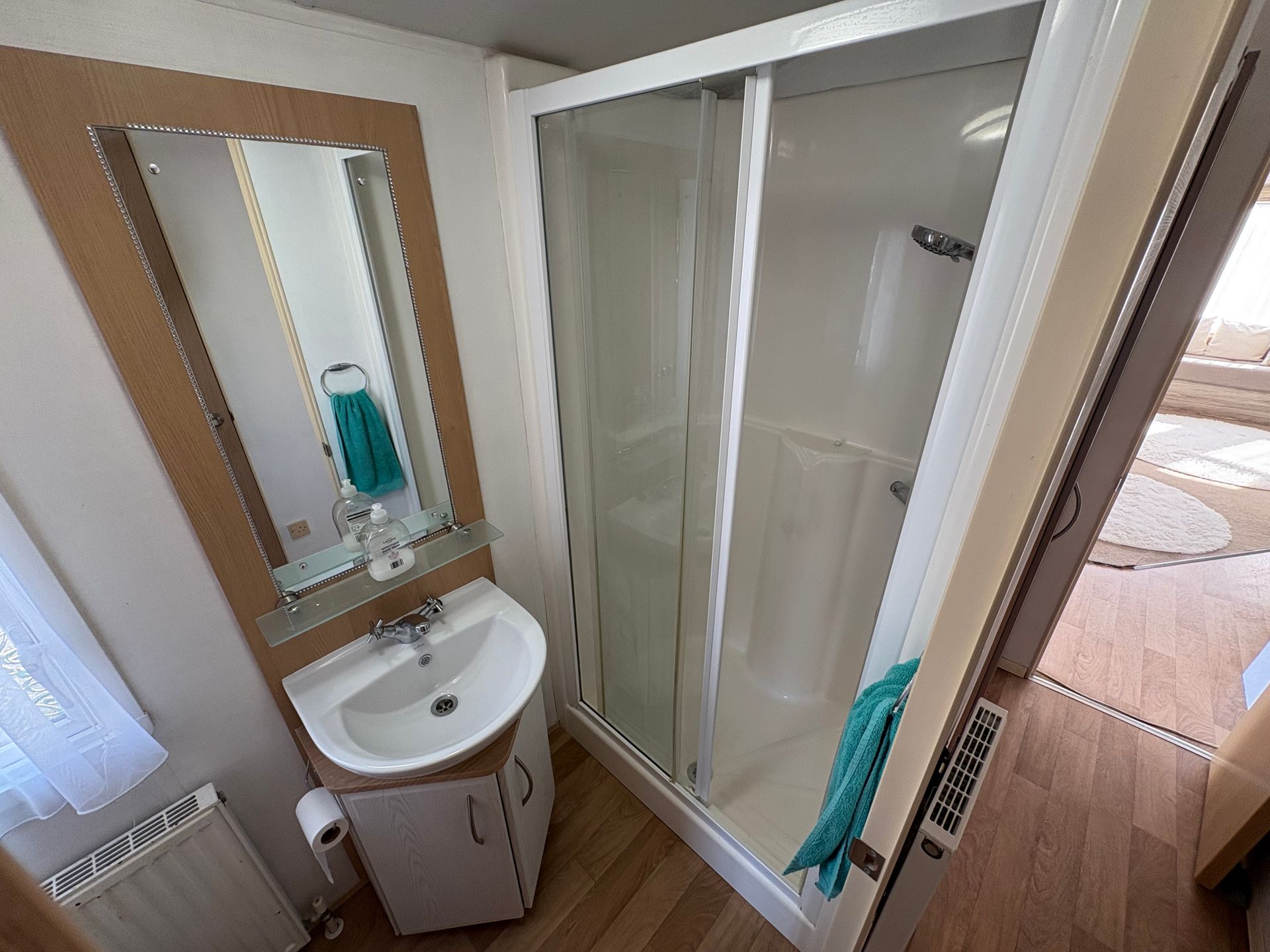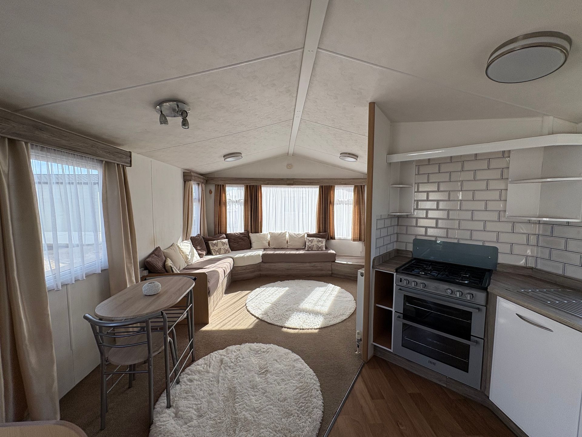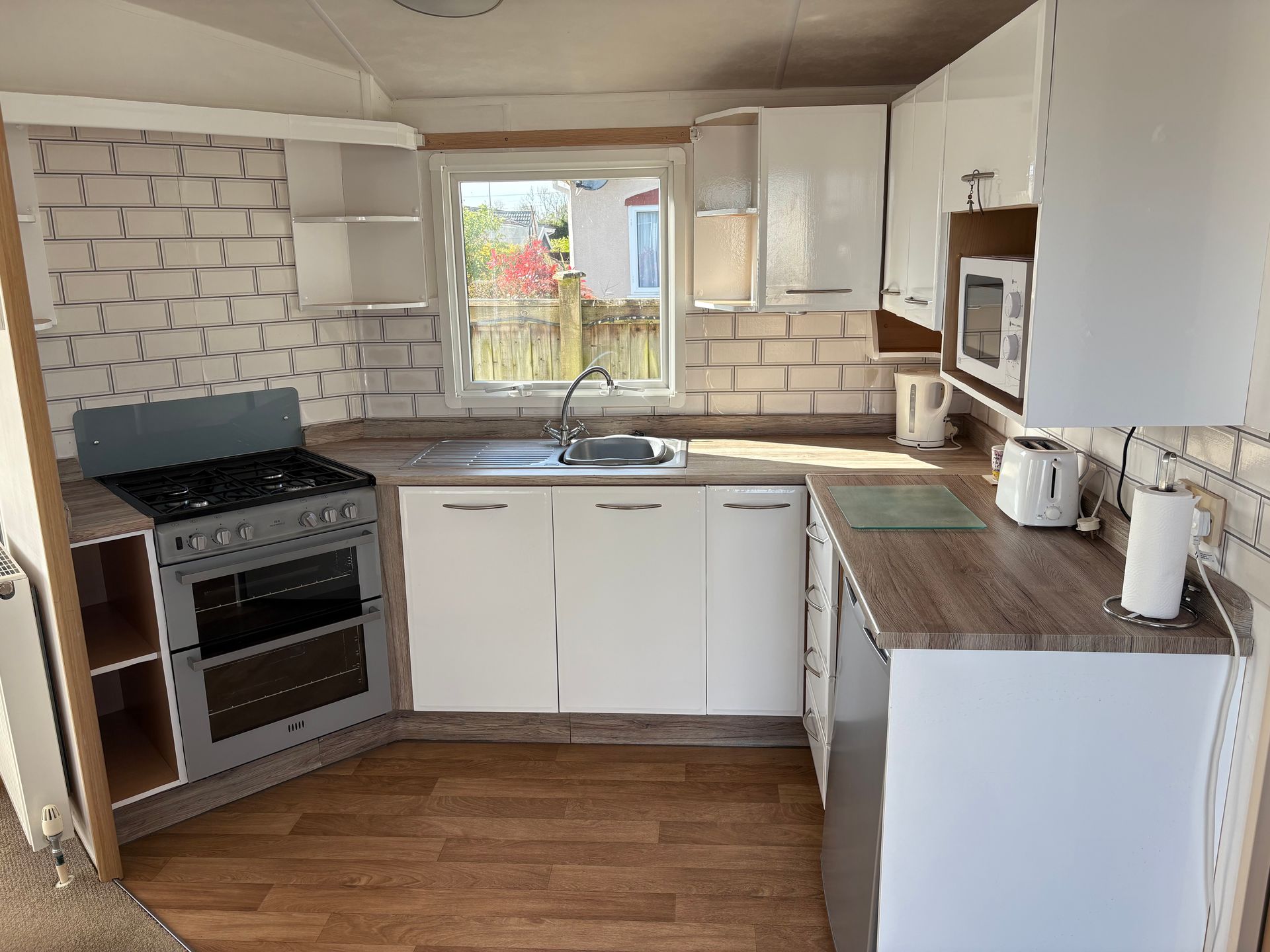 This well-kept 2-bed Willerby Westmorland boasts a bright, open-plan lounge with comfortable fixed seating and plenty of storage. The kitchen is fully equipped with good worktop space.