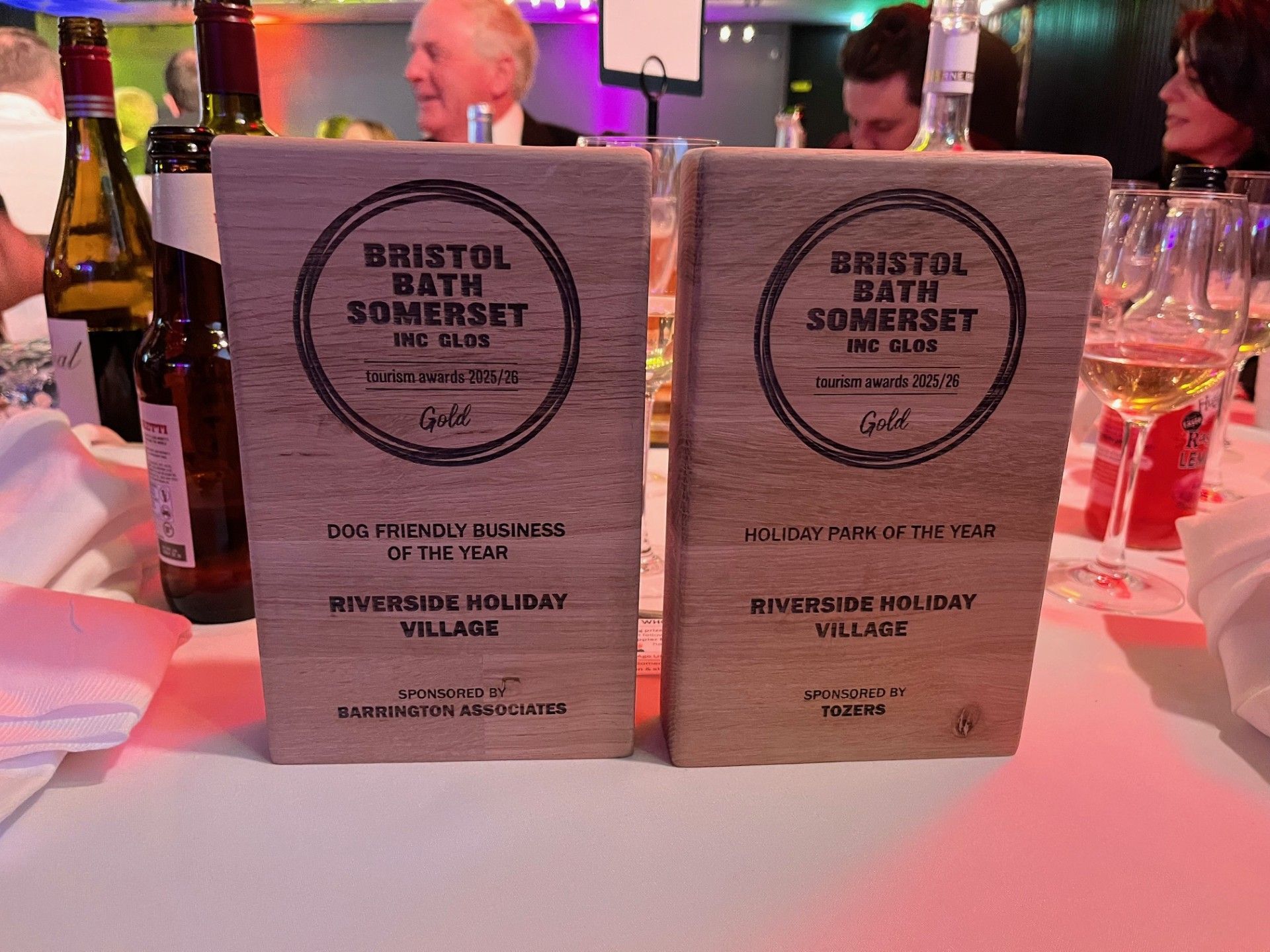 We are delighted to share that Riverside Holiday Village has been named the Holiday Park of the Year and Dog Friendly Business of the Year at the Bristol, Bath and Somerset Tourism Awards 2026, held at The Apex City of Bath Hotel in Somerset.